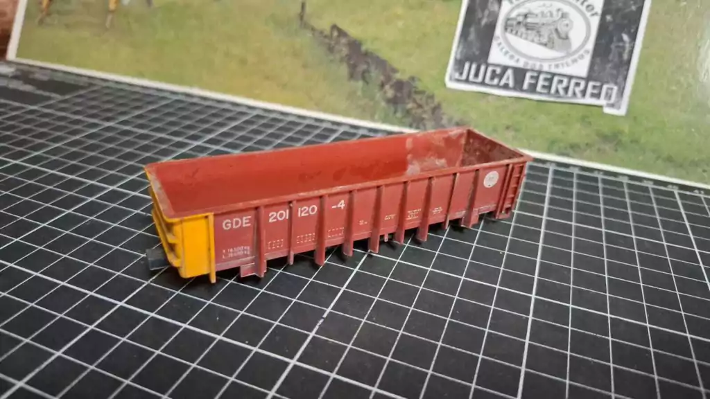 <<< Na Ferrovia real, esse tipo de vagao sempre andou em pares, devido ao carregamento do minerio e nessa numeracao fazia par com o numero GDE 201.121-2 ( que tambem temos esse em outro anuncio) >>>