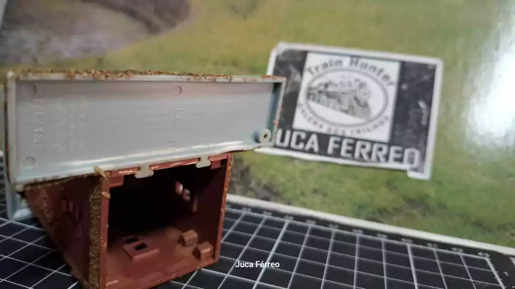 Tem algumas colagens na peça, como gramas, vegetacoes e terra, oriundas da antiga maquete